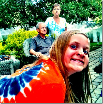 We celebrated Father’s Day with presents for Dave in the morning, a visit from my mom and dad in the early afternoon (where we tried to show my dad the exciting world of the ipad…he was amazed, but not enough to invest in monthly internet fees), and then we went to Dave’s parents’ house in the evening. We visited, ate, and went next door to the St. Paul’s Bazaar for fun, but got caught in the rain! We took refuge in the snow cone stand that Maddie’s friend Caroline was working. I’m happy to report that no goldfish were won this year.